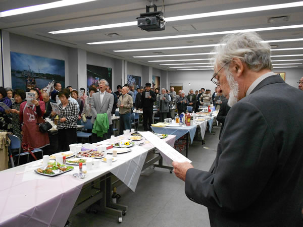当日午前はまだ天候がもっていたが、午後に入って、急速に前線の通過に伴う強風と雨に見舞われた。それにもかかわらず、当日150名を超える卒業生、元教職員が集まった。